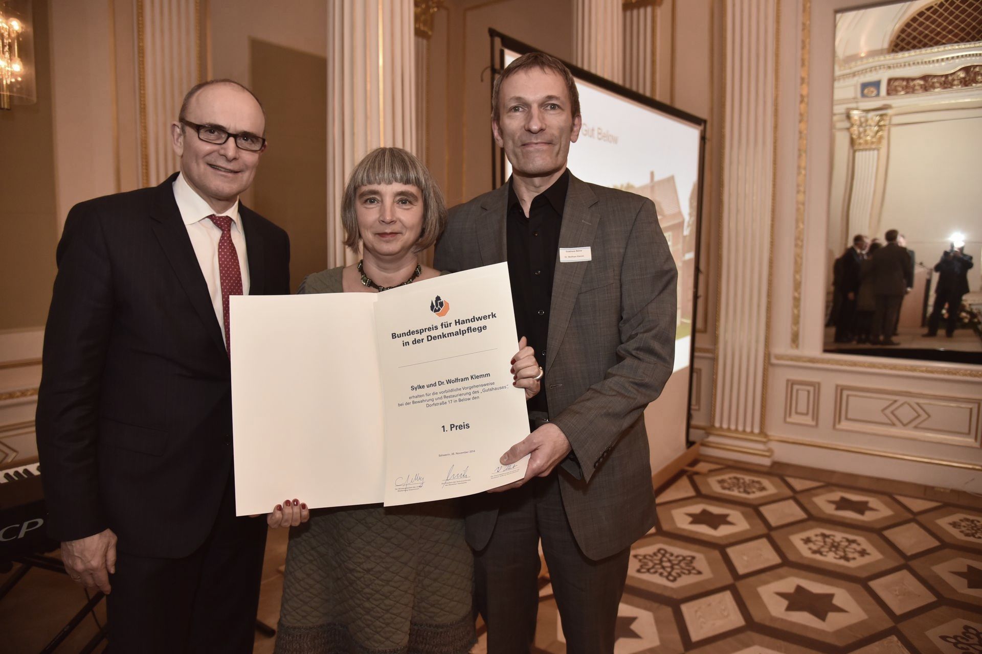 Das Ergebnis der Restaurierung wurde mit dem 1. Platz des Bundespreises für Handwerk in der Denkmalpflege ausgezeichnet, der von Ministerpräsident Erwin Sellering im Goldenen Saal des Neustädtischen Palais in Schwerin am 26. November 2014 überreicht wurde. Die Begründung der von der Deutschen Stiftung Denkmalschutz und dem Zentralverband des Deutschen Handwerks gebildeten mehrköpfigen Jury lautete: